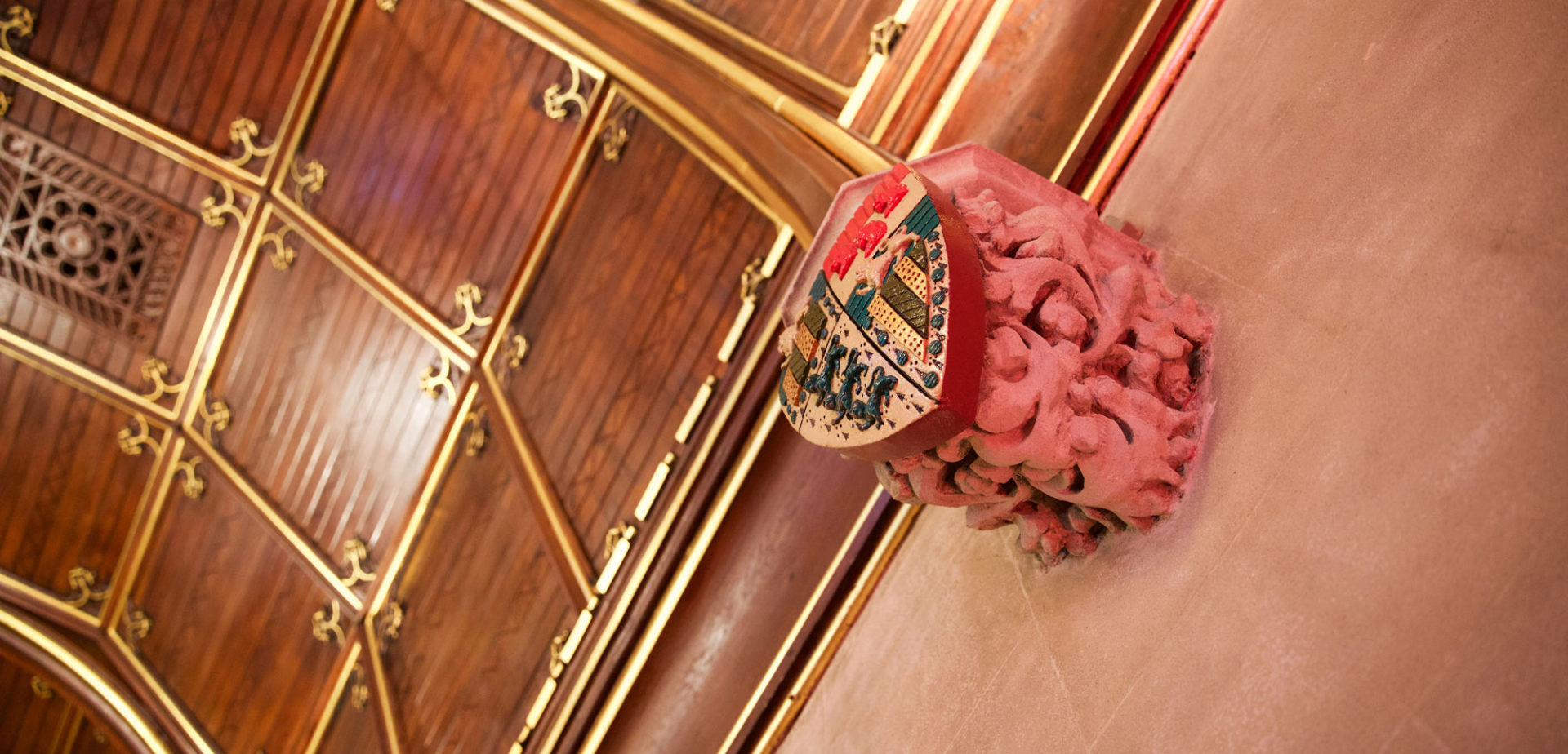 The Chief Commoner’s Parlour is a striking and intimate room. Featuring a large oval table, open fireplace and beautiful ornate features.  The eye-catching gilded wood roof and two decadent chandeliers make the space ideal for small meetings, lunches and dinners.
