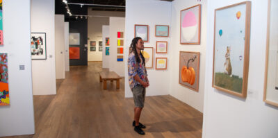 East Gallery is a modern and stylish gallery venue that preserves its nineteenth-century carriage house features, including elements such as exposed steel structures, concrete flooring, and high-arched windows with views overlooking The Mall.