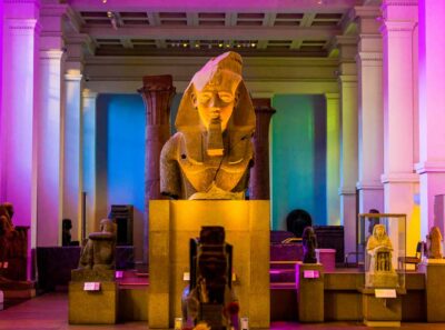 Located on the ground floor near the main entrance, the Egyptian Gallery offers a striking setting for evening events. Surrounded by majestic ancient sculptures, it’s ideal for standalone receptions or as a dramatic pre-dinner drinks space before dining in the Great Court.The space can hold up to: